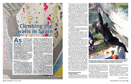 Marena interviewed rock climbers and joined their community in Spain. Read the article in pages here; see the full page design here.