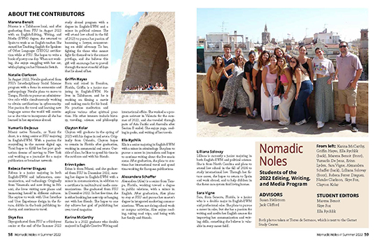 The print magazine is produced by students in the Editing, Writing, and Media Program during their summer classes in Valencia, Spain. This publication gives students a hands-on opportunity to learn more about the editing, writing, design, and social media aspects of publishing. Students who sign up for the program become unofficial foreign correspondents while exploring the region. Valencia offers plenty to see, do, and write about: medieval churches, renowned art museums, and European football, just to name a few.