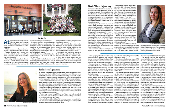 Sofia Sierra and Katie Weaver share their law school paths, separated by an ocean of differences. Read the article in pages here; see the full page design here.