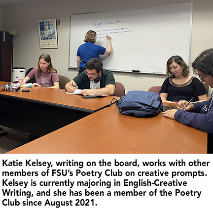 Once she entered college, it took no time for Kelsey to find the Poetry Club, an FSU student organization, which she discovered at her freshman-year Involvement Fair.