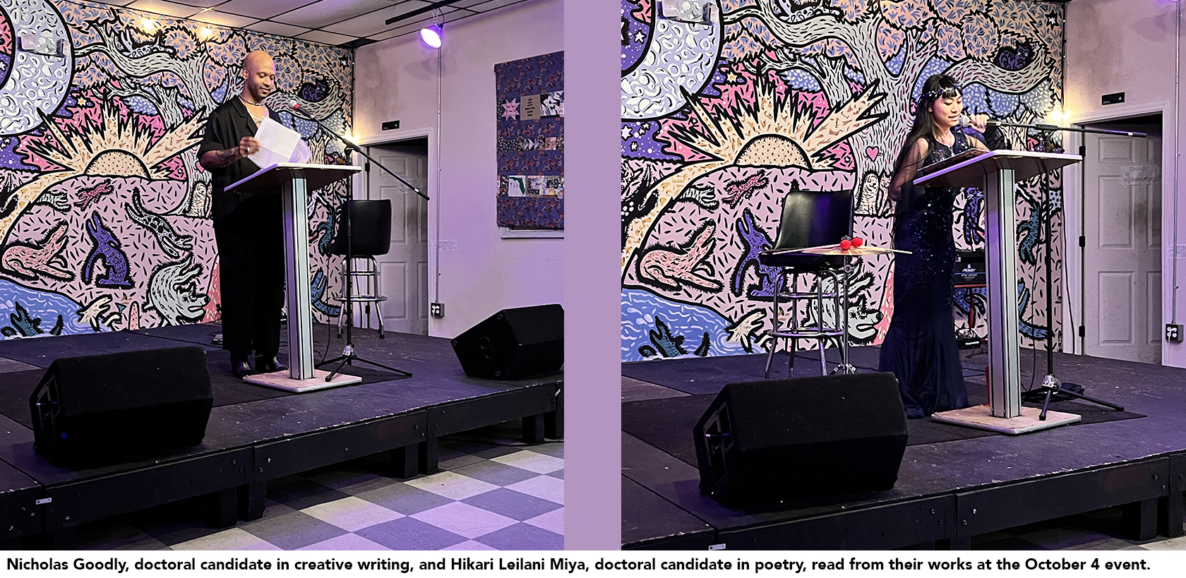 During the events, Borruso and Sokolowski experience the readers’ work the same as anyone else who attends the event. They say they enjoy hearing many different perspectives and styles from those in the Creative Writing Program, along with the tone switch that occurs from reader to reader. Some readers express trauma or have a serious tone, for example, while others may have a comedic approach.