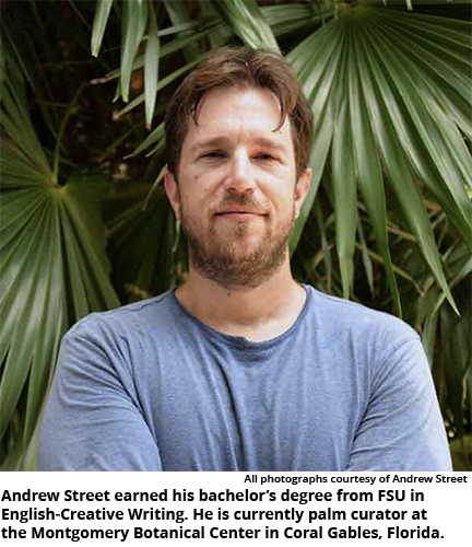 Since his days as an English-Creative Writing major at Florida State University, Street has led a life of discovery, traveling worldwide and pursuing an activity that is unlike what he learned in FSU classrooms: the collection and study of palms.