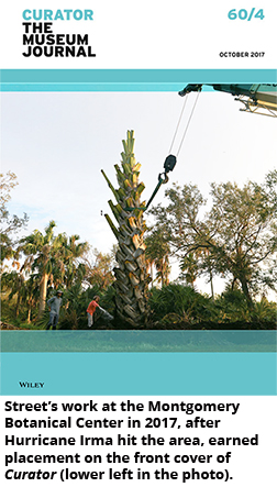 Street demonstrated his own rock-star quality when Hurricane Irma hit the Montgomery Botanical Center in 2017, damaging and knocking over many of the rare plants cultivated there, including a Corypha taliera palm. That palm species is originally native to Myanmar and the Bengal region of India and Bangladesh.