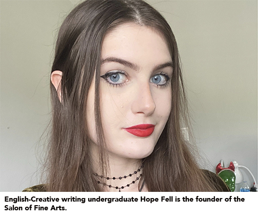 While Fell is giving herself space to grow and change with her creative outlets, she also is embarking on the journey to bring people together through the founding of the Salon of Fine Arts, a space for students to join in collaboration and inspiration.