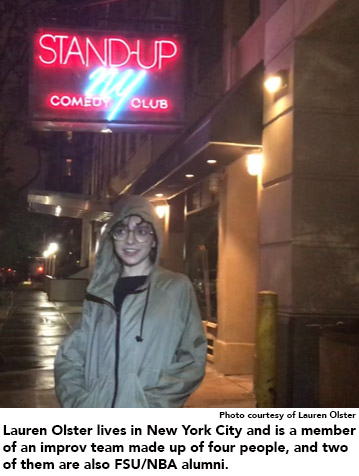 Olster says she followed her passion for comedy and improv after her NBA involvement, which taught her that it is OK to break out of her comfort zone. Along with learning those lessons, Olster takes the knowledge she acquired in her English courses to develop her comedic skills and her confidence when it comes to performing and writing.