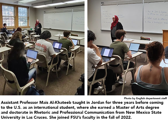 Once she finished her doctoral studies at NMSU, Al-Khateeb became an assistant professor of Rhetoric and Writing Studies at California State University in Los Angeles. While she enjoyed her time there, the university’s objectives primarily focused on teaching, so she had little to no time to do research. Research is invaluable and important to her, though, so Al-Khateeb knew it was time, once again, to find a more suitable environment for herself. While searching for research-based institutions, she came across FSU.