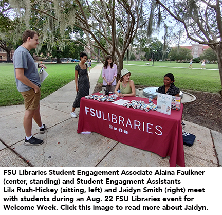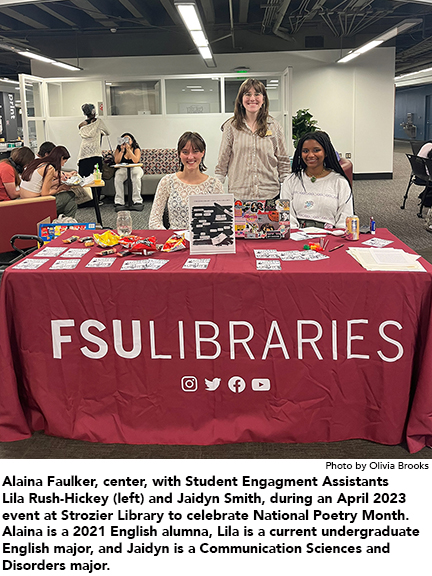 FSU Libraries Student Engagement Associate Alaina Faulkner applies undergraduate studies to her work, master's program