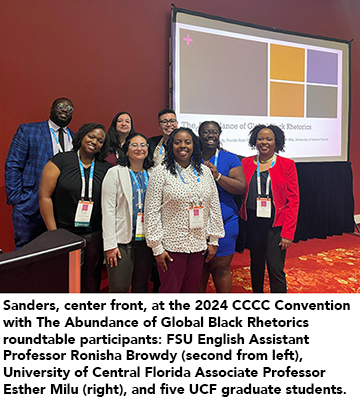 In early April, Sanders recently traveled to Spokane, Washington, for the 2024 CCCC Convention to accept the award. She also presented her research on Friday, April 5, as part of The Abundance of Global Black Rhetorics roundtable discussion that included Browdy, University of Central Florida Associate Professor Esther Milu, and seven graduate students who work with Milu at UCF.