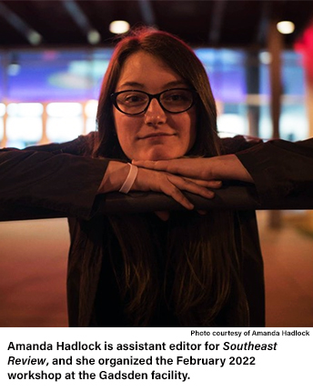The incarcerated person initiative began in 2019 with former SER nonfiction editor Dyan Neary. Neary is a Spring 2021 FSU English alumna, earning her doctorate in Creative Writing-Nonfiction, and she hosted the first event at the same facility. However, the pandemic put the workshop on hold.