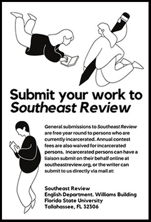 “Our goals are to spread awareness about Southeast Review and to receive more submissions from incarcerated writers,” she explains. “We provide the tools for submission and hopefully they will do so.”