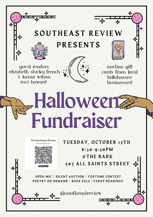 Southeast Review is a nonprofit 501c3 organization run by graduate and undergraduate students who attend Florida State University. The fundraiser helps the magazine cover its yearly operating costs, which includes paying the authors and printing the fall and spring issues, and provides funds for editors to travel to the Association of Writers & Writing Programs Conference to represent the magazine.