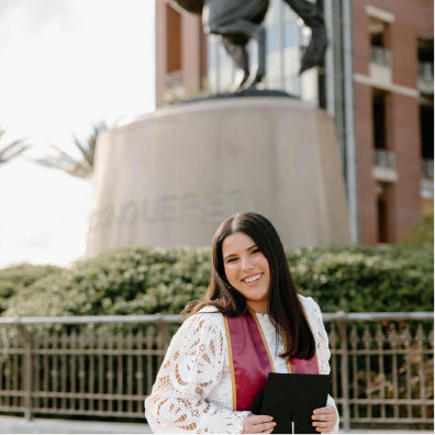 As a Florida native from Davenport, about 30 miles southwest of Orlando, Cardoso wanted to stay in-state for her undergraduate years. She was attracted to FSU’s not-too-far and not-too-close distance from home as well as the beautiful campus.