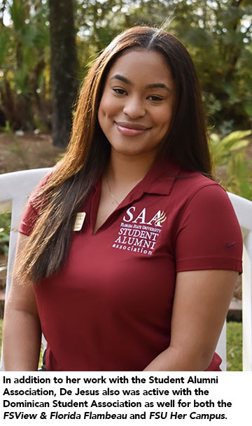 While at FSU, De Jesus was active with the Dominican Student Association and Student Alumni Association, and she worked for both the FSView & Florida Flambeau and FSU Her Campus. She is currently living in Miami.