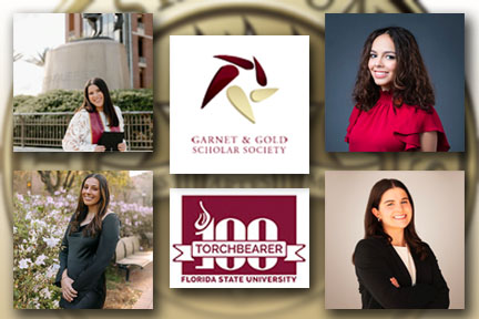 Victoria Cardoso (top left) and Paula Rodriguez-Saenz (top right) were inducted into the Garnet & Gold Scholar Society. Torchbearer 100 Program welcomed Sara Vigne (bottom right) as a new inductee. And Alyssa Cuevas became a member in both scholarly organizations. Read about each student at our Instagram LinkTree. Read more...