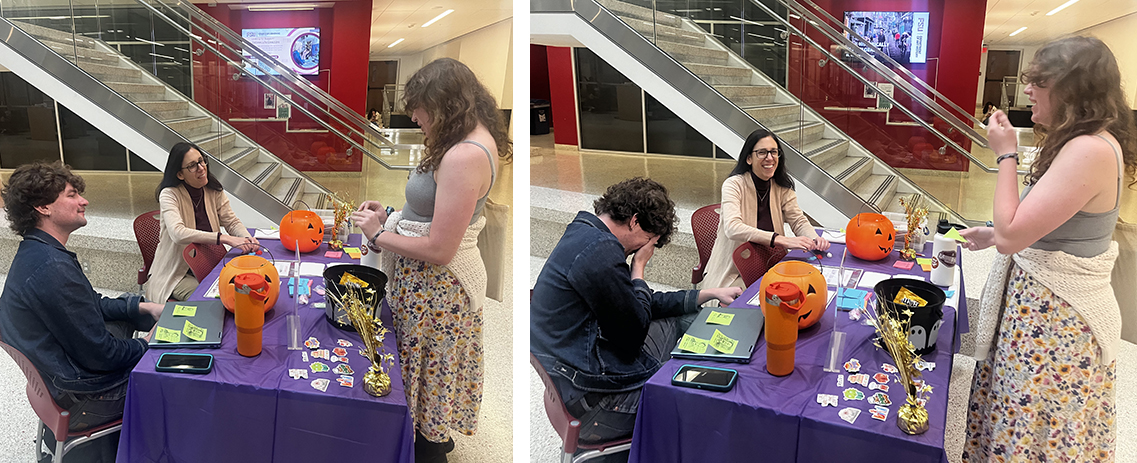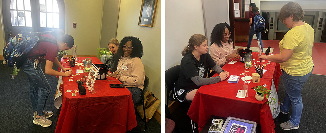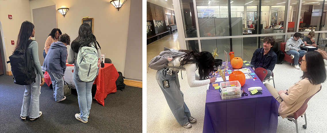 This photograph gallery shows the Reading-Writing Center and Digital Studio staff working at tables and engaging with students who shared their examples of "Notes in Our Lives." All photos courtesy of RWC-DS.