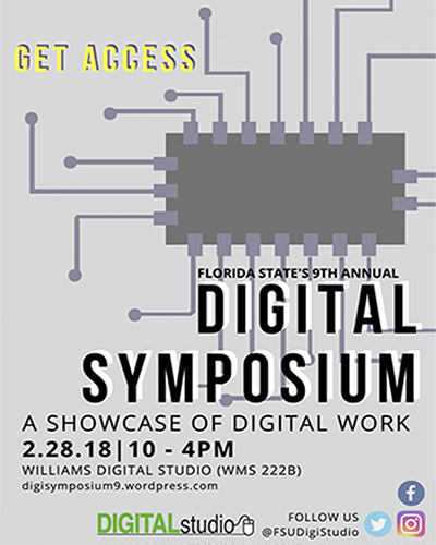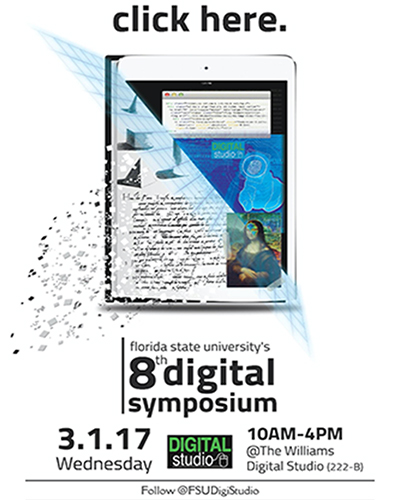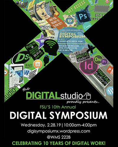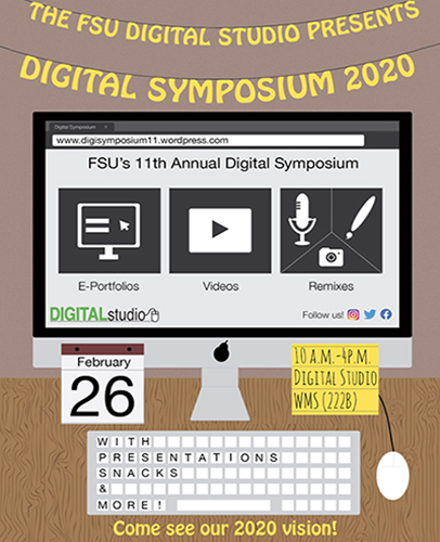 FSU’s Digital Studio hosts the Digital Symposium, an annual event that highlights some of the digital scholarship, pedagogy, and production in the department and beyond. Each year the program curator organizes an open house and publishes a website to host the selected projects for the year. Click on any of the years below to view the entries in that year’s Symposium.