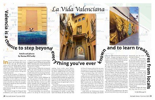 The print magazine is produced by students in the Editing, Writing, and Media Program during their summer classes in Valencia, Spain. This publication gives students a hands-on opportunity to learn more about the editing, writing, design, and social media aspects of publishing. Students who sign up for the program become unofficial foreign correspondents while exploring the region. Valencia offers plenty to see, do, and write about: medieval churches, renowned art museums, and European football, just to name a few.