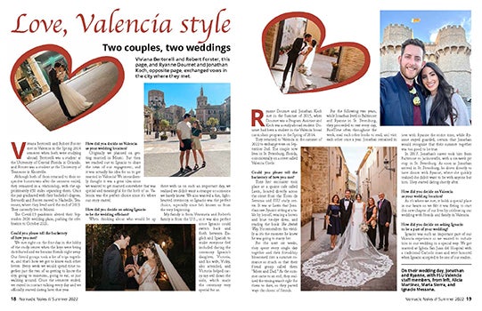 Two couples exchanged vows in the city where they met. Read the article in pages here; see the full page design here.