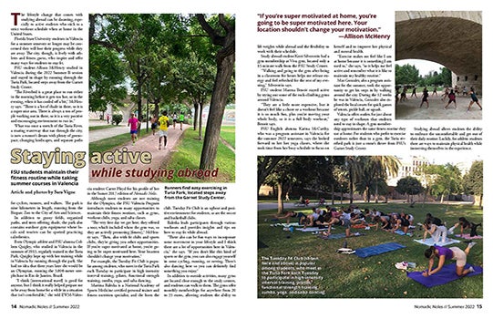 FSU students maintain their fitness routine while taking summer courses in Valencia. Read the article in pages here; see the full page design here.