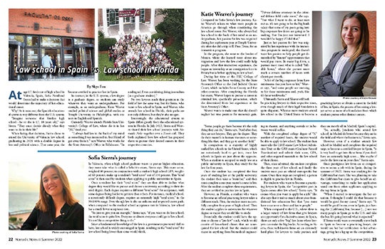 Sofia Sierra and Katie Weaver share their law school paths, separated by an ocean of differences. Read the article in pages here; see the full page design here.