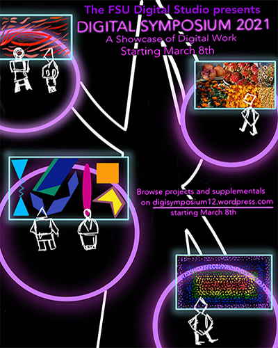 FSU’s Digital Studio hosts the Digital Symposium, an annual event that highlights some of the digital scholarship, pedagogy, and production in the department and beyond. Each year the program curator organizes an open house and publishes a website to host the selected projects for the year. Click on any of the years below to view the entries in that year’s Symposium.